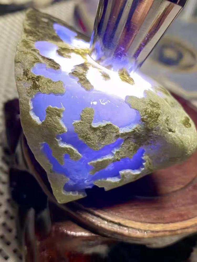 我接触翡翠原石也有一段时间了,刚开始是因为看电视节目《奇石》的缘故,喜欢玉石,自己也买过一些和田玉,青海玉,玛瑙。只是一直没有真正研究到门径,基本就是瞎弄。后来有幸在论坛认识,经常在微信上请教,还是很耐心的教了我很多相关的知识,还有很多行业内幕,学会了很多,这块是我自己开窗的,非常感谢。