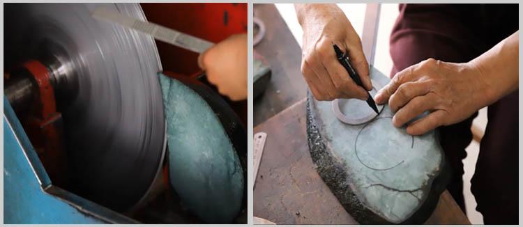一般我们从缅甸挑选好料子之后,运回国内进行加工制作。第一步就是切割。切割是一门技术活,切割方式大致分为两类:粗切和细切。