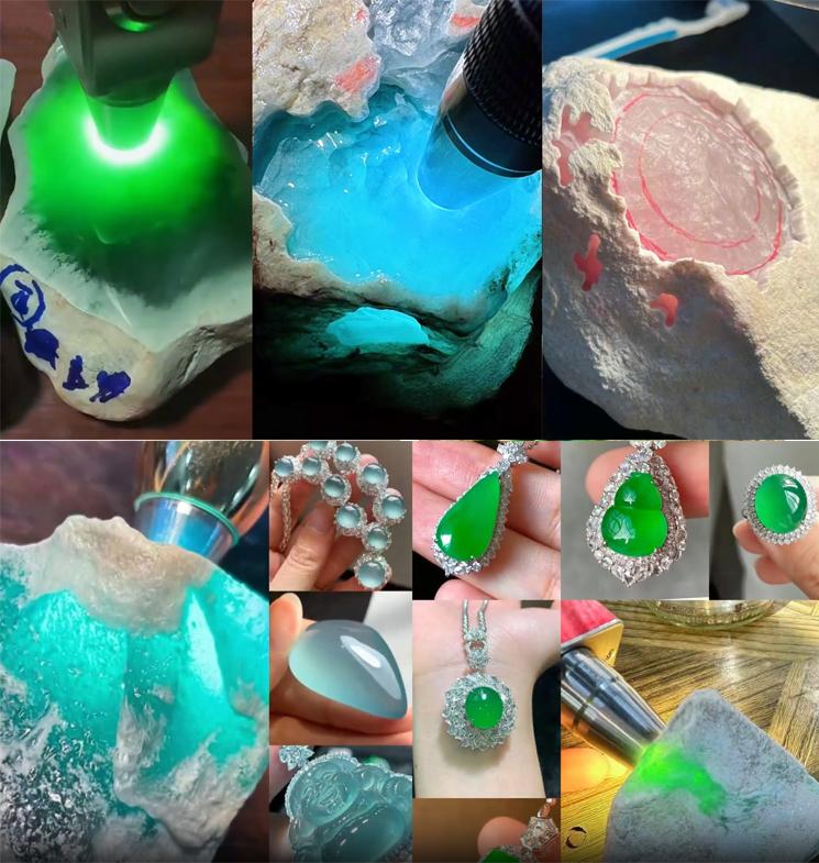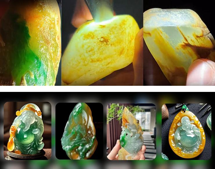 所以拿到一块翡翠原石,会先仔细的观摩,因为都是纯天然的,所以要根据原石的形态进行取色、设计,每位出色的雕刻师都会很好的选择避开原石上的裂纹、黑点、瑕疵。让每一块翡翠原石都可以把最美的一面呈现给大家。 这是最考验设计师的环节。